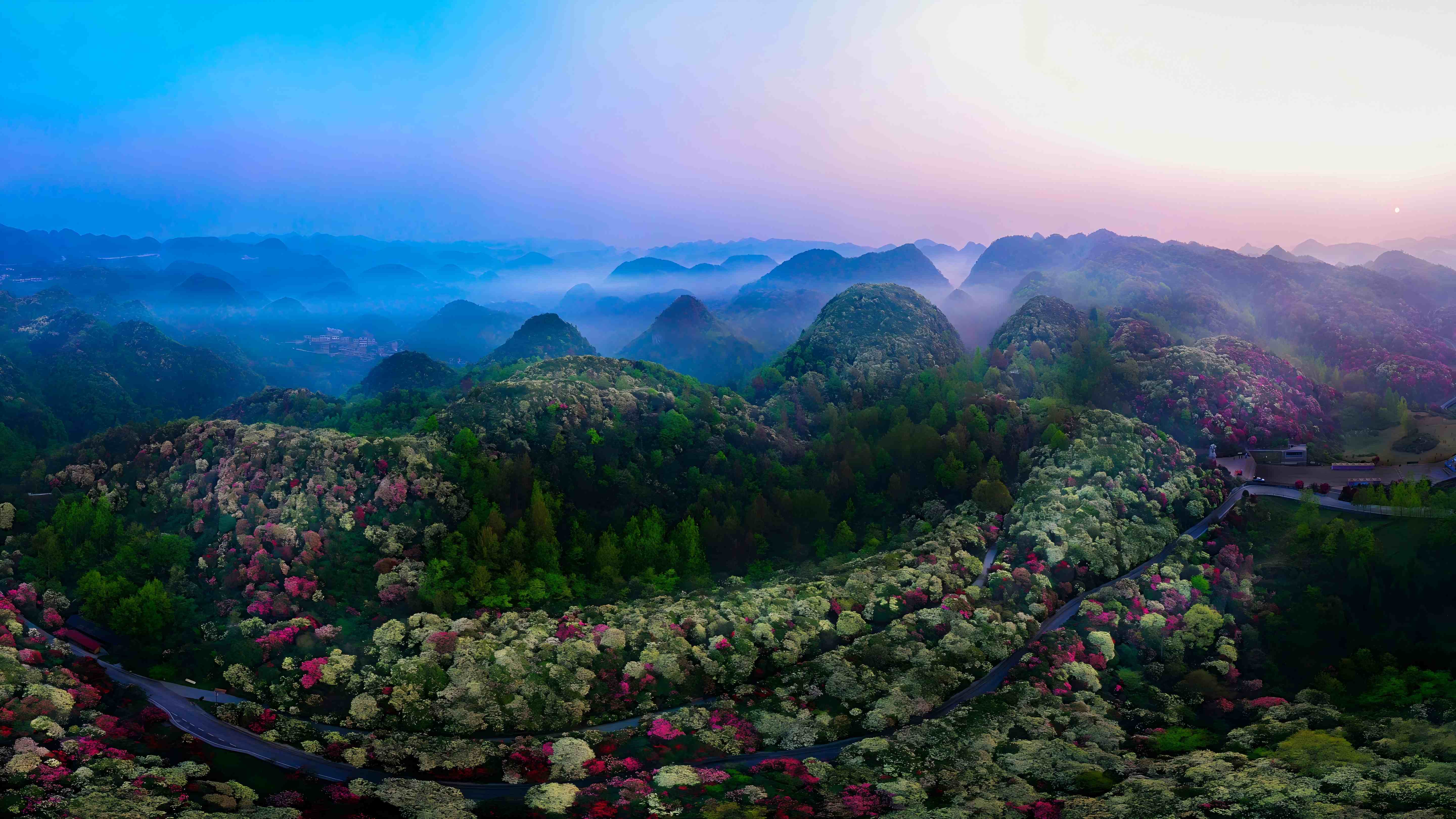 你可以看晨雾漫过万峰轮廓,