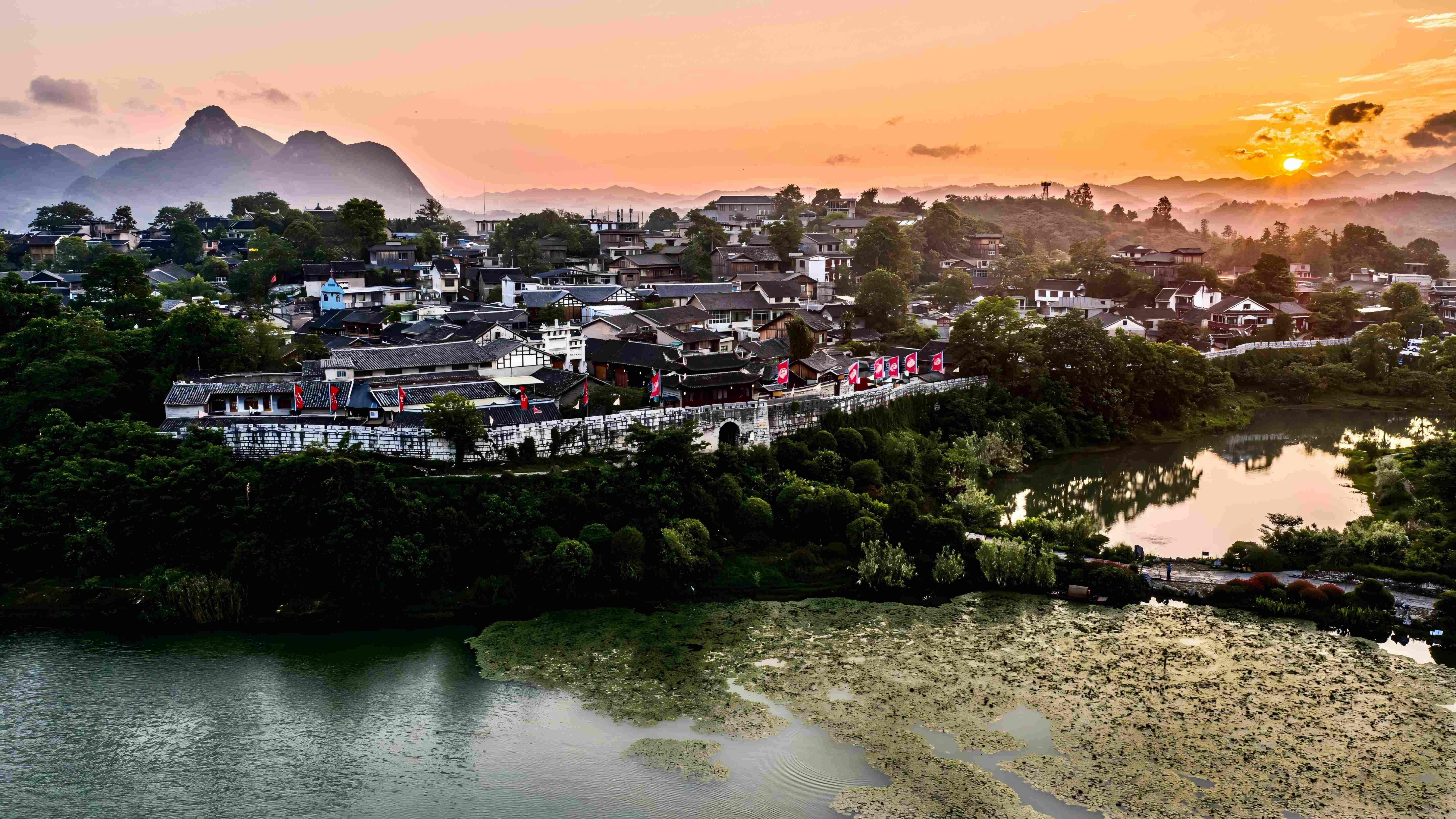 碧水蜿蜒,轻绕太极古城。