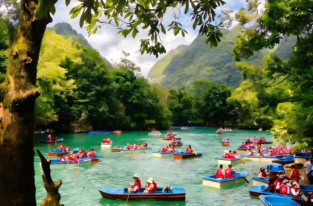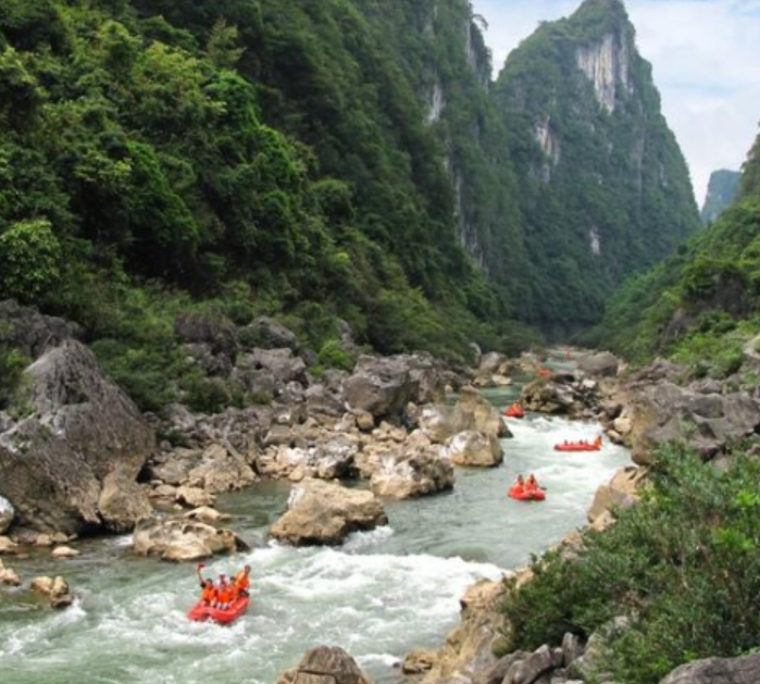 第三天上午前往荔波水春河,体验长达13公里的峡谷漂流。漂流全程约2-3小时,穿梭于喀斯特峡谷间,经历10余处激流险滩与平静河段的交替,欣赏两岸原始森林与布依族村寨风光。漂流结束后乘车返回贵阳,结束这段山地之旅。