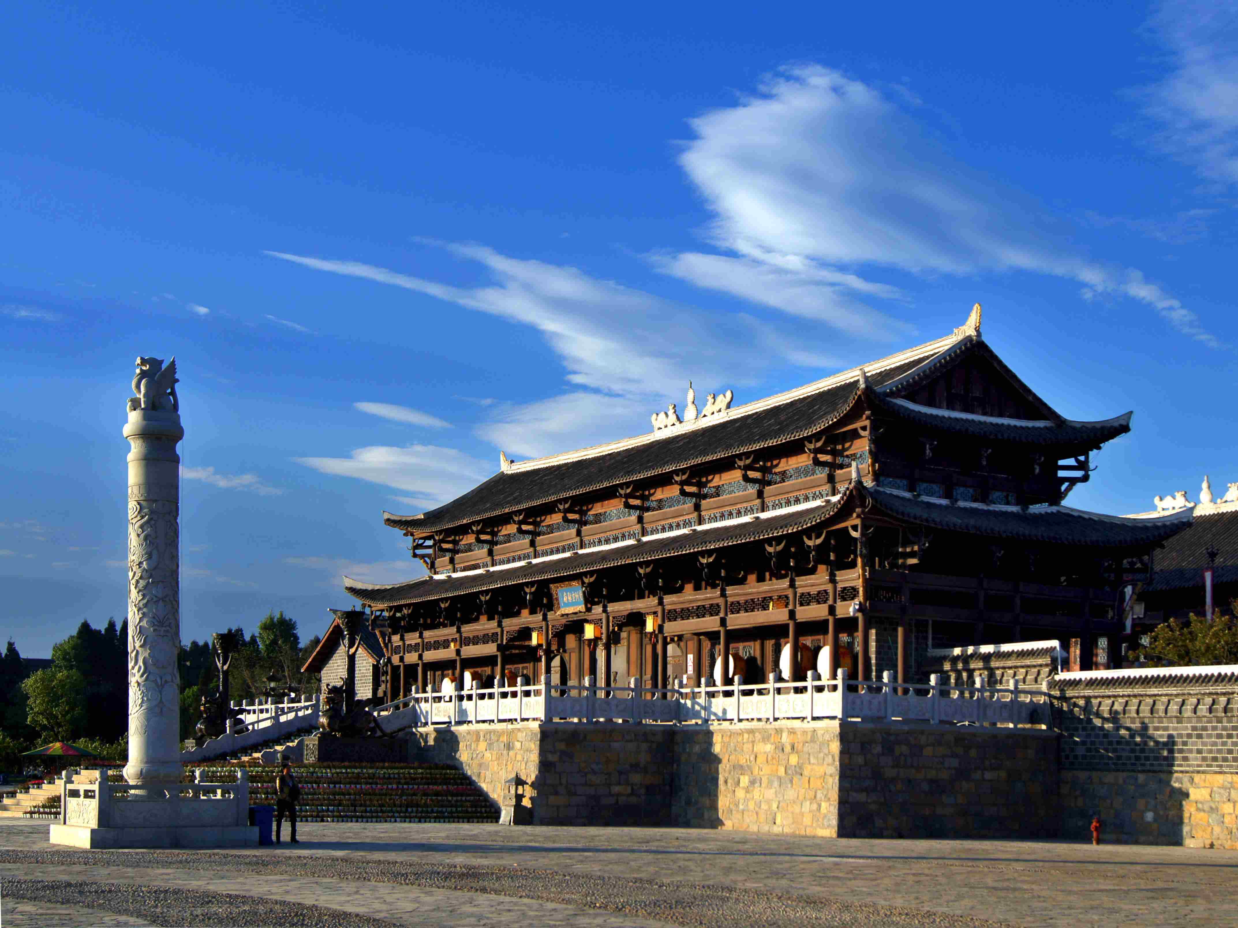 重建后的古城以贵州宣慰府为核心建筑群,融合了汉族殿宇风格与彝族图腾元素。奢香博物馆馆藏珍贵文物1400余件,系统展示着彝族历史文化。此外,古城内还有斗姥阁、民族风情街等景点,定期举办彝族火把节、歌舞表演等活动,是体验古彝文明活态传承的窗口。