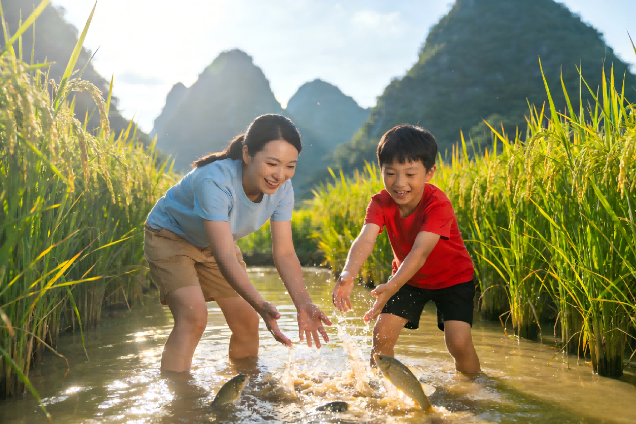 乘上稻田小火车,穿行于磅礴峰林与金色稻浪之间,步入童话般的布依族纳灰村,邂逅最诗意的田园童趣。 -