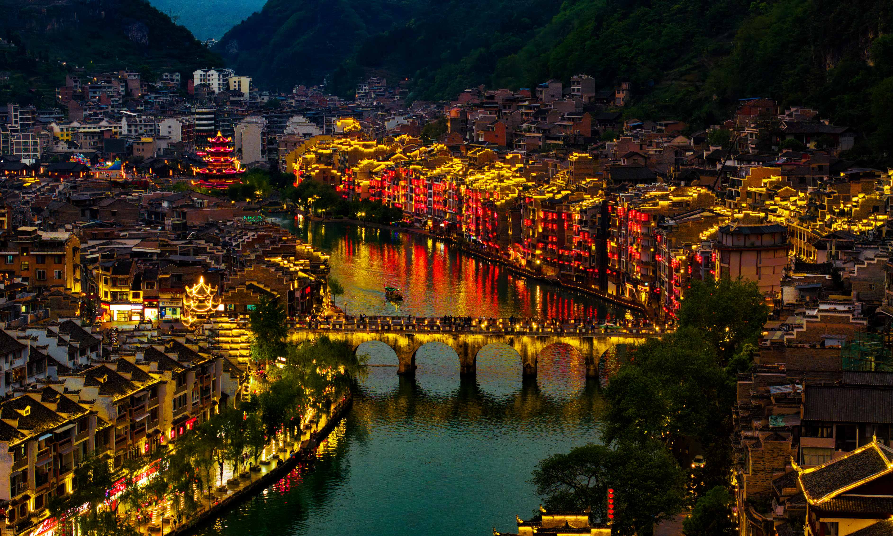 乘着彩船缓缓启航,划破㵲阳河的柔波。依山而建的吊脚楼藏在暮色里,灰瓦飞檐与风雨桥的倒影随波漫溢,岸上更有诸多趣事等待你的探索。 -