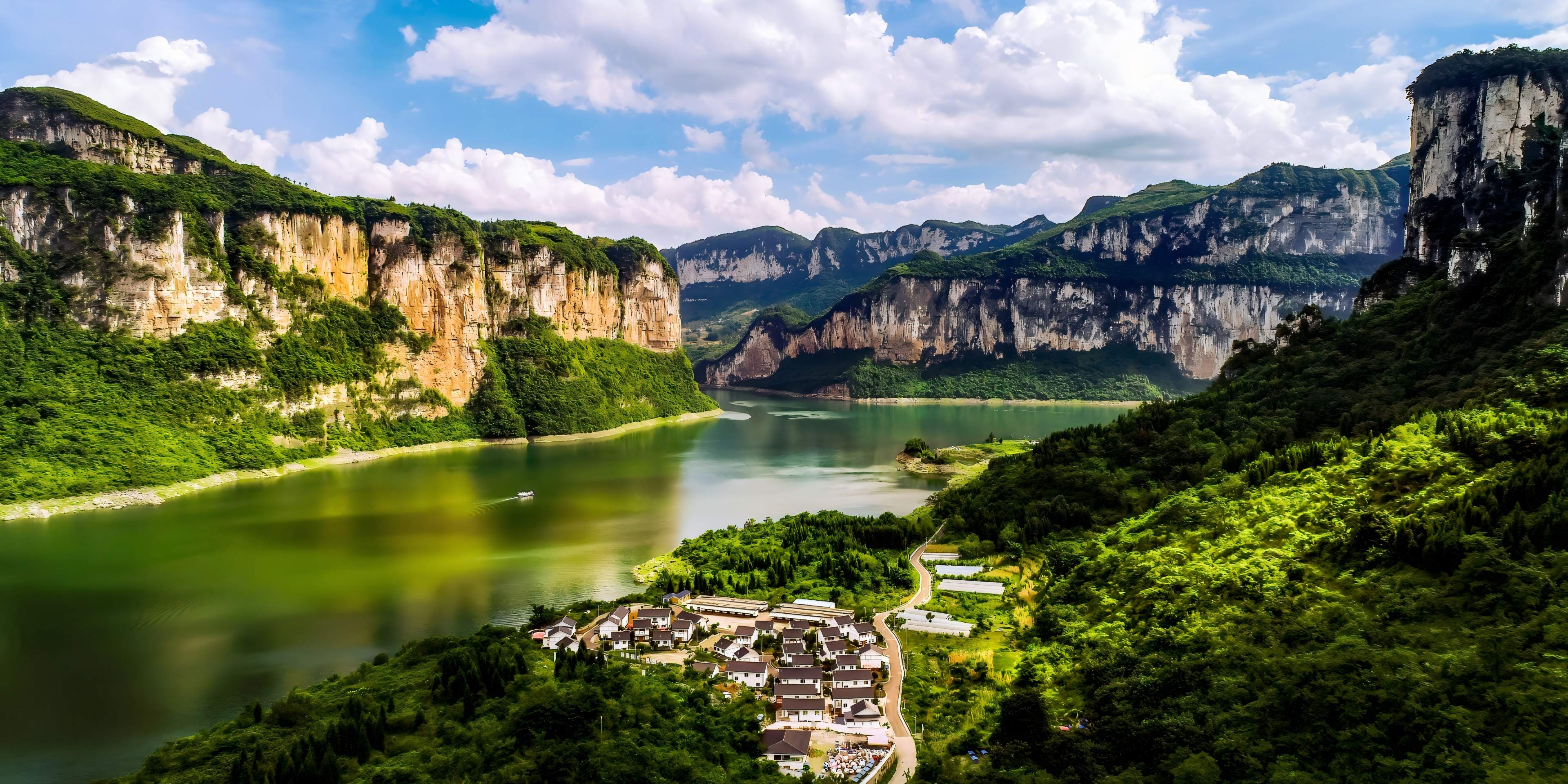 乌江百里画廊是长江上游支流乌江上一段集峡谷风光、高峡平湖与人文古迹于一体的山水画廊典范,主要包含“乌江源百里画廊”与“乌江百里画廊·酉沿精华段”两大核心游览区。前者位于贵州省毕节市黔西市,是因东风水电站建设而形成的喀斯特峡谷湖泊景观,有“山似三峡而水胜三峡,水似漓江而山胜漓江”的美誉;后者是2025年正式开通、连接重庆市酉阳县与贵州省沿河县的跨省精品航线,共同构成“千里乌江,百里画廊”的壮丽画卷。