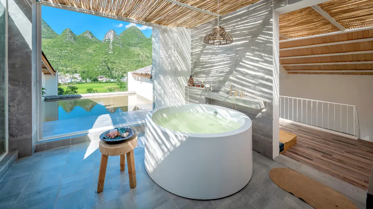 坐落于黔西南兴义市万峰林景区万福村半山,2020 年开业,为全国甲级旅游民宿。由布依族石木老屋改造,保留青瓦石墙与传统建筑肌理,共 14 间全景景观客房,推窗直瞰万峰林与福字田。民宿融合布依非遗美学与侘寂风设计,配套半山无边泳池、瑶浴 SPA、非遗手工体验、观景露台、私房餐厅与星空茶吧。以峰林全景、非遗沉浸、康养疗愈、亲子研学为核心特色,连续多年入选携程口碑榜,是万峰林高端旅居标杆。